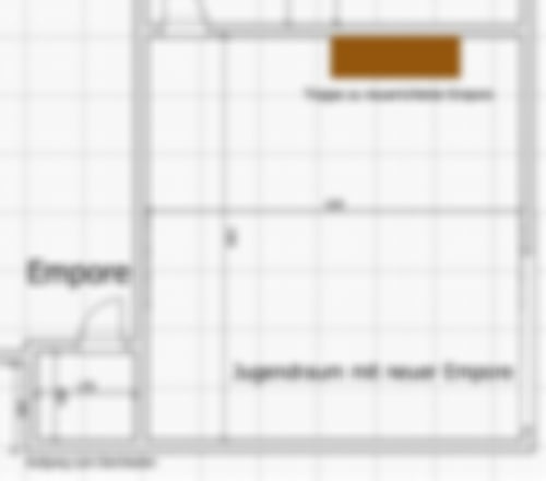 - Einbau einer „Zwischendecke“ bzw. Empore im Mehrzweckraum über zwei Drittel des Raumes, um so quasi eine Verdopplung des Raummaßes mit viel Lagerfläche zu erreichen.